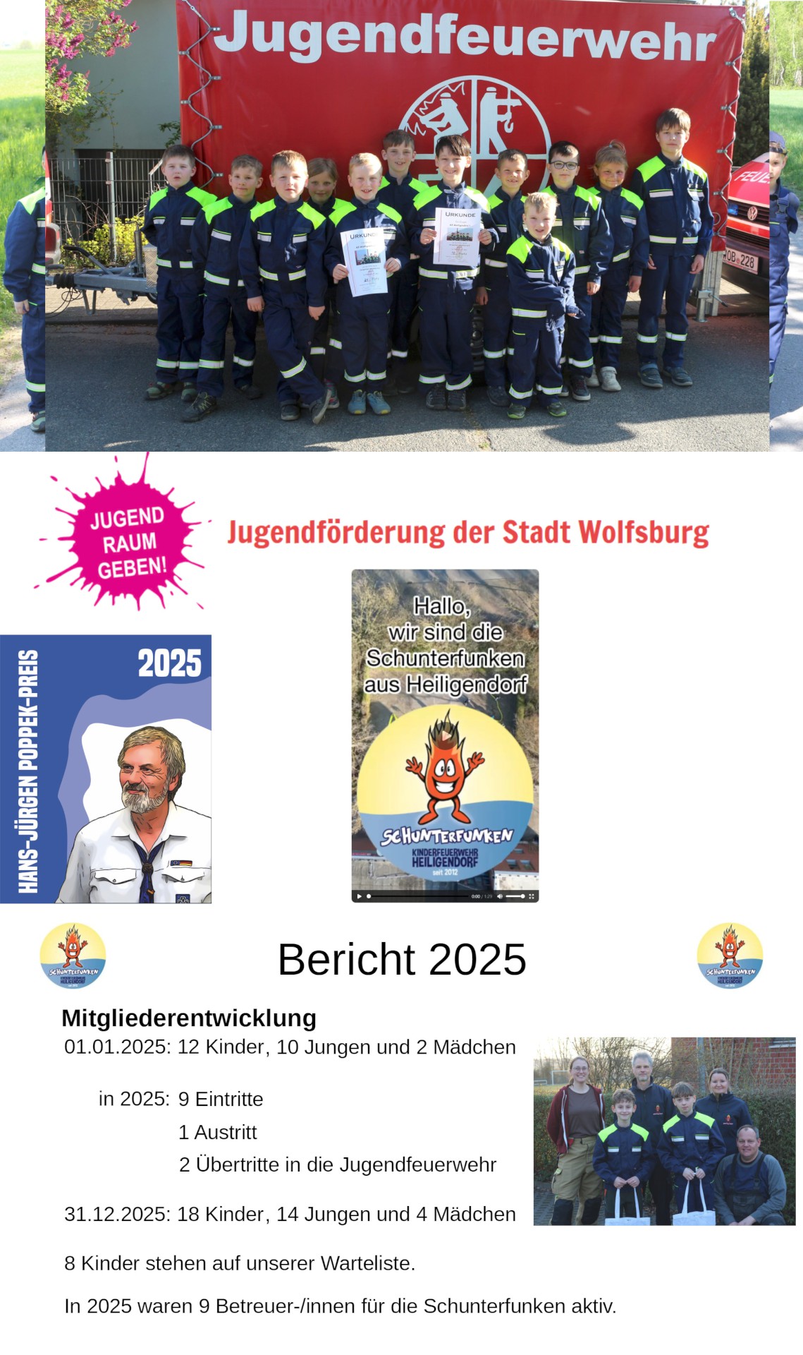zwei Übertritten in die Jugendfeuerwehr mündete zum Ende des Jahres 2025 in 18 Schunterfunken,