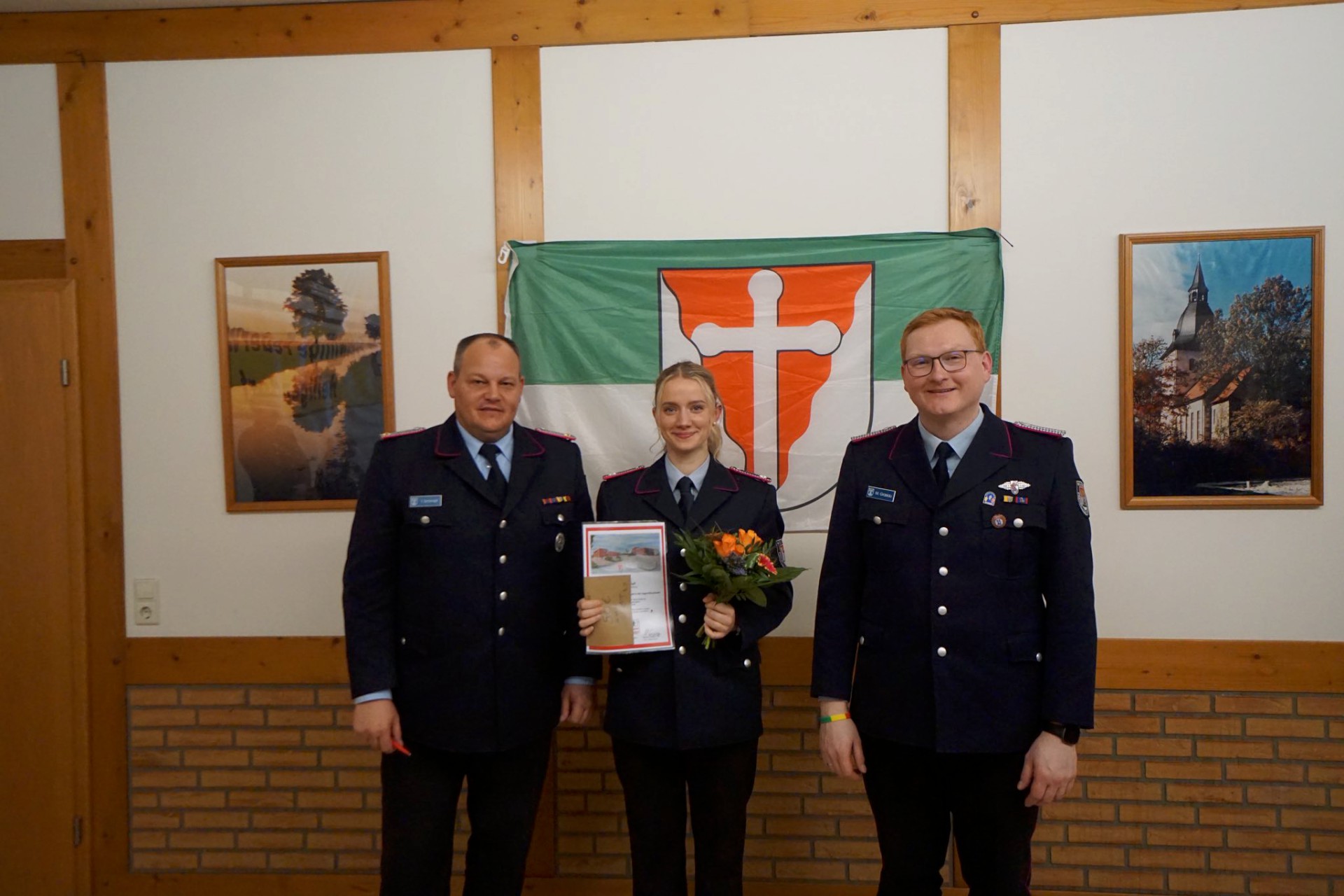 Luca Haber, Jonas Häußer und Gisa Verwied wurden zu Hauptfeuerwehrmann bzw. Hauptfeuerwehrfrau befördert.
