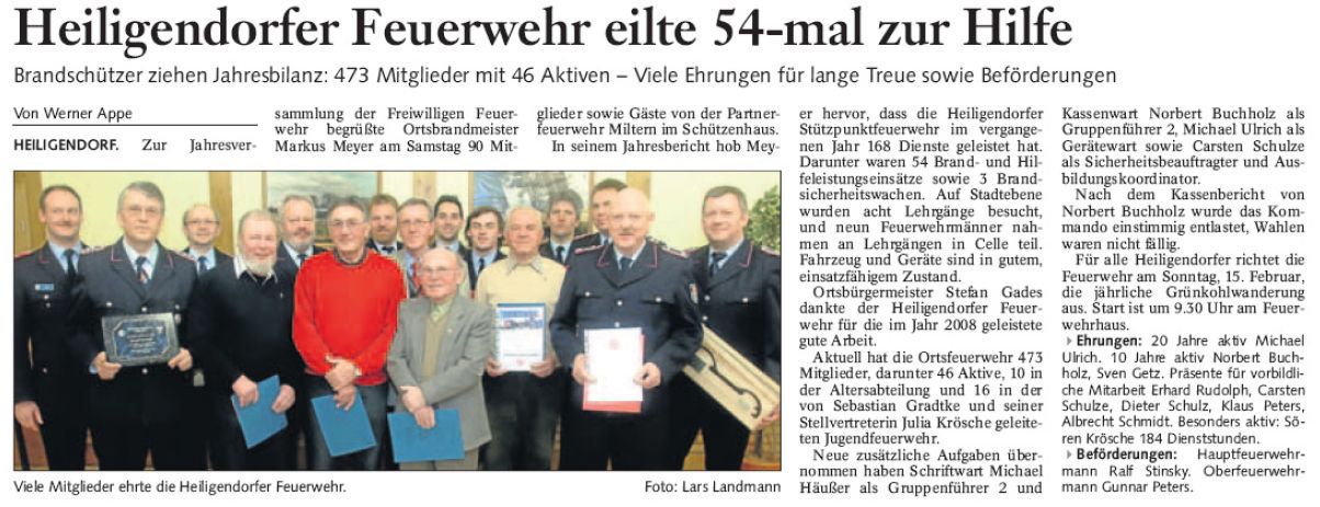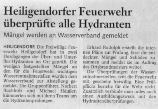 | 19.01.2009 | WN | Bericht über die Jahreshauptversammlung der FF Heiligendorf |