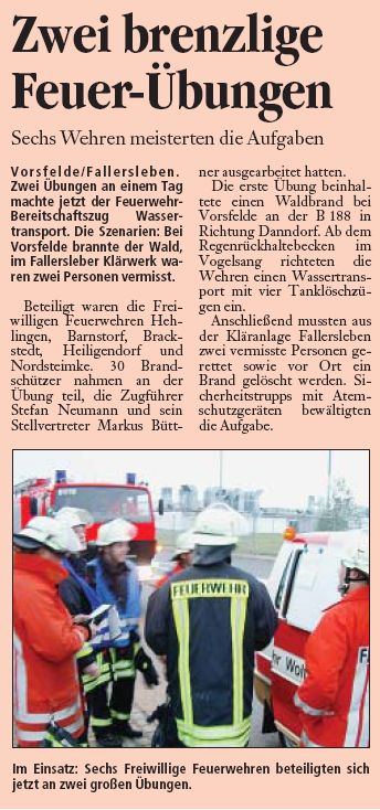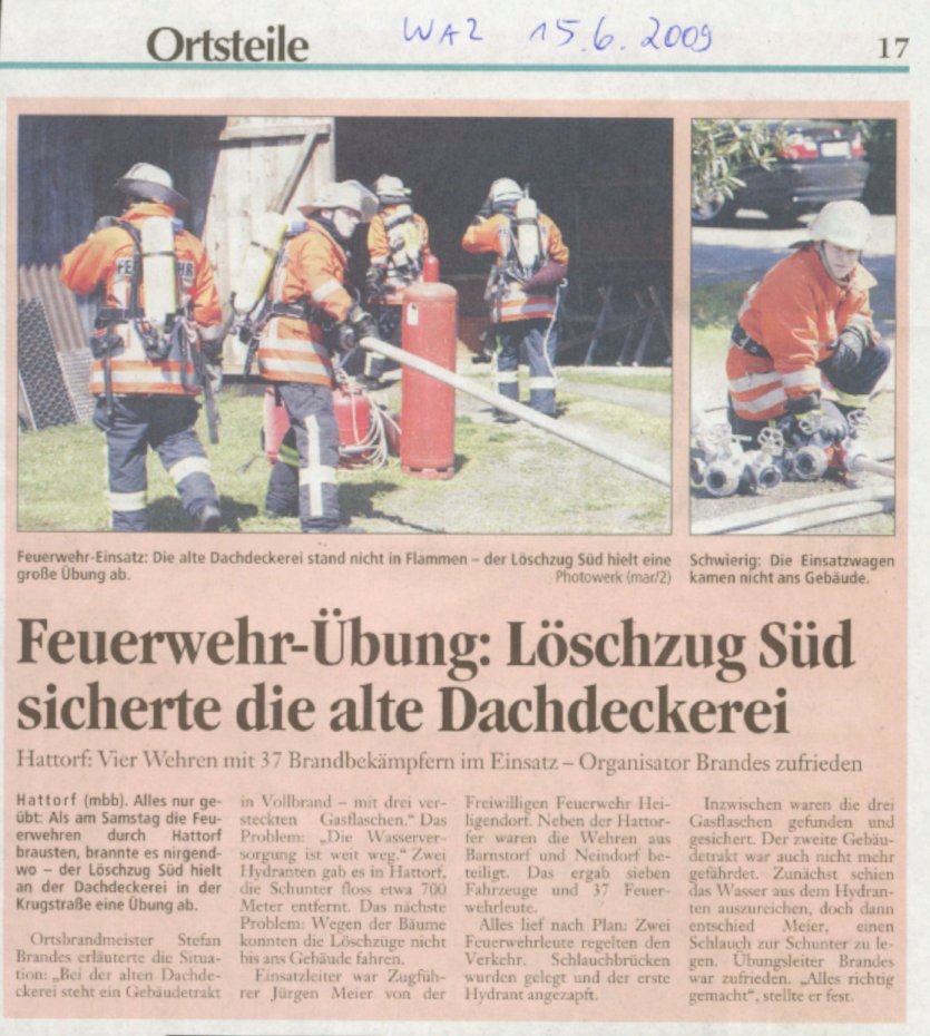 | 15.06.2009 | WAZ | Bericht über eine Übung des Löschzuges Süd |