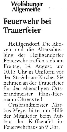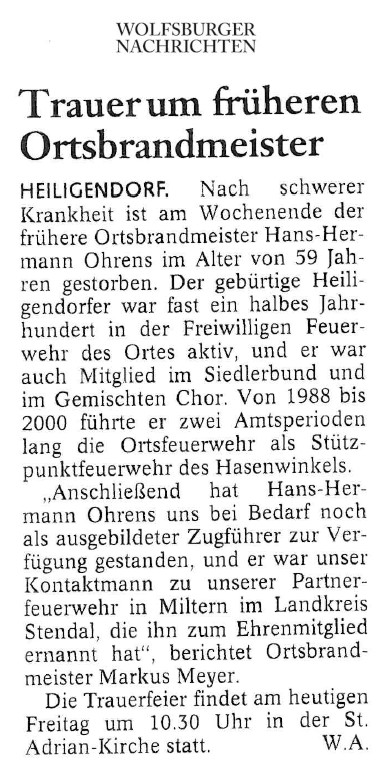 Berichte zum Tod des ehemaligen Ortsbrandmeisters Hans-Hermann Ohrens |