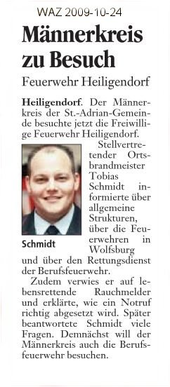 | 24.10.2009 | WAZ | Bericht über den Besuch des Männerkreises bei der Freiwilligen Feuerwehr |