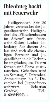 | 04.11.2009 | WAZ | Bericht über das bevorstehende Plätzchen-Backen mit Lothar |