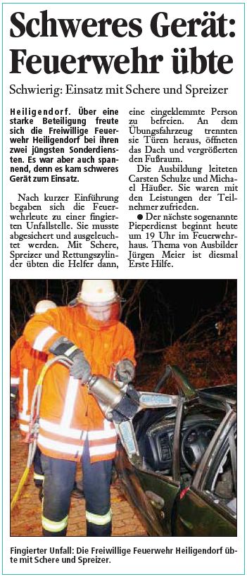 | 06.11.2009 | WAZ | Bericht über den Pieperdienst Schere-Spreizer |