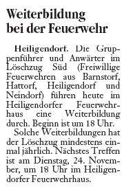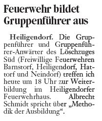 | 24.11.2009 | WAZ | Bericht über die Gruppenführer-Weiterbildung des Löschzuges Süd |