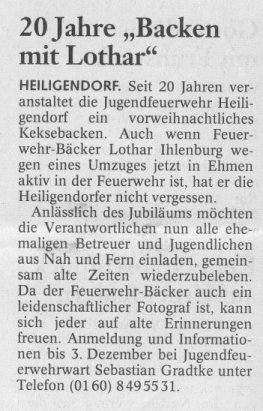| 25.11.2009 | WN | Bericht über das vorweihnachtliche "Backen mit Lothar" |