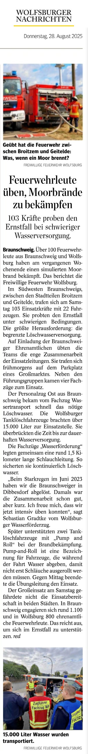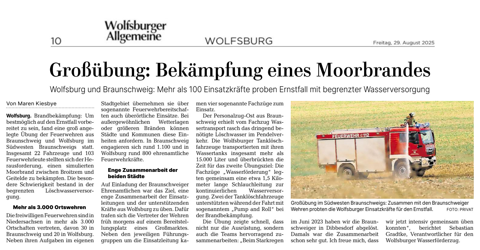 Berichte zu einer Großübung der Fachzüge Wassertransport und Wasserförderung gemeinsam mit der Bereitschaft der FF Braunschweig | |