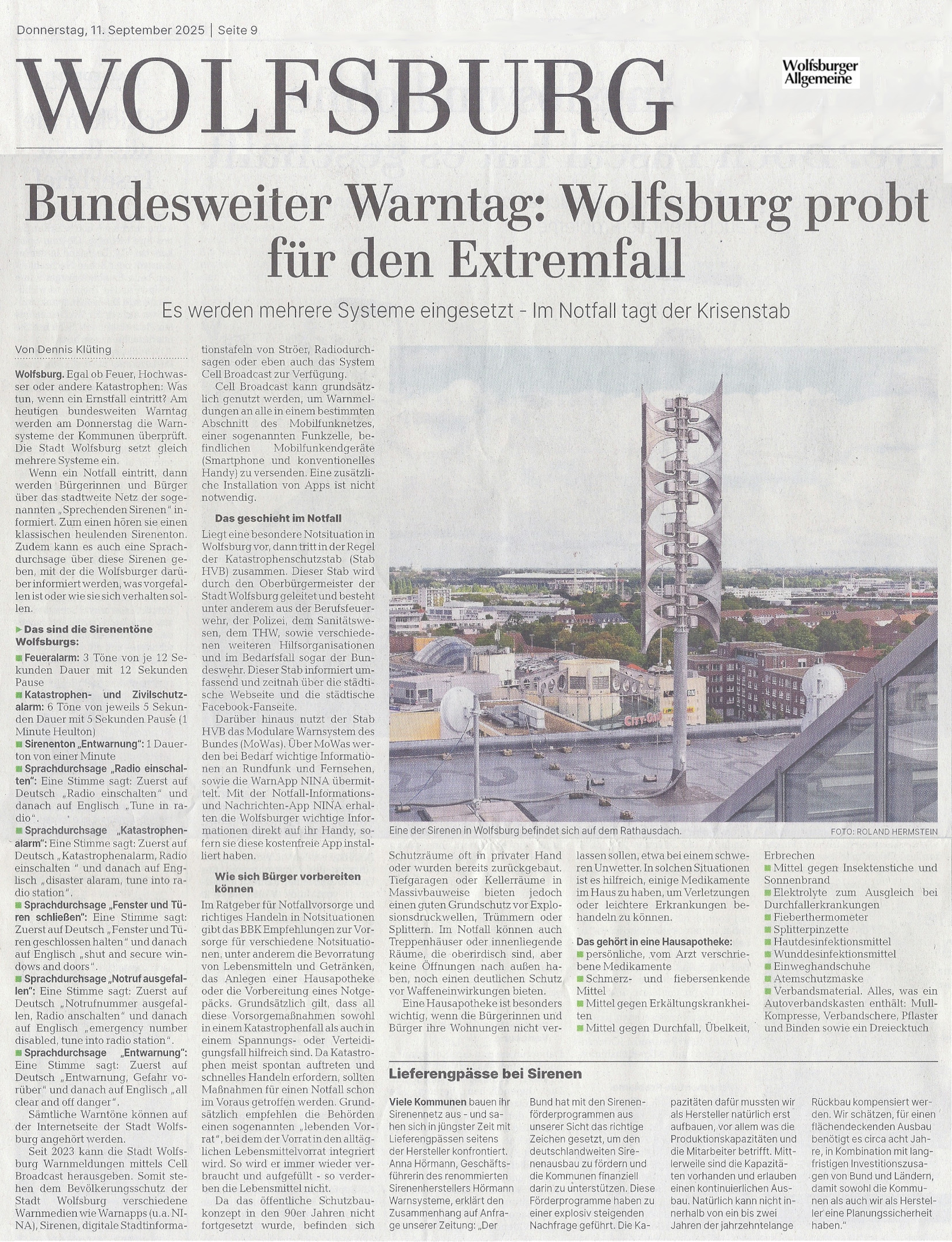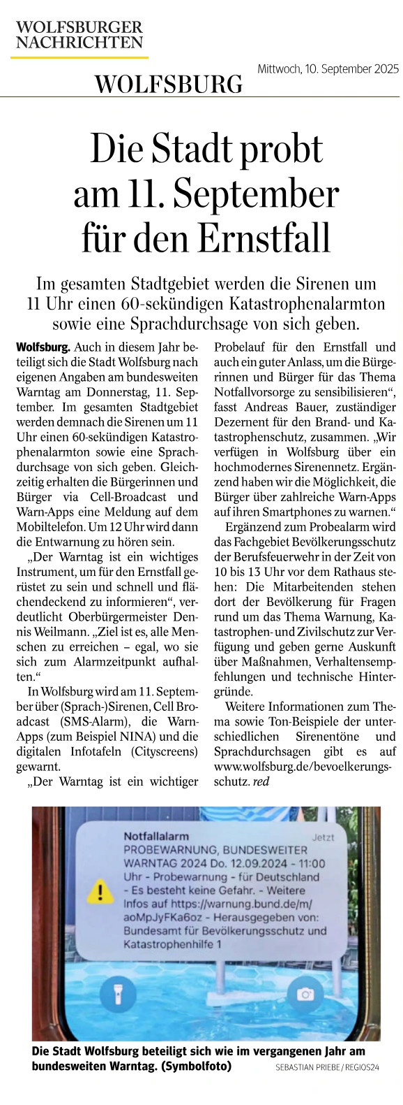 Ankündigungen des bundesweiten Warntages am Donnerstag, den 11. September |