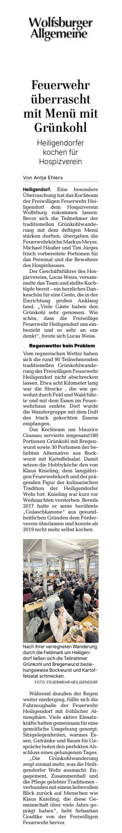 | Bericht zur Grünkohlwanderung und zur Grünkohlspende an das Hospiz |