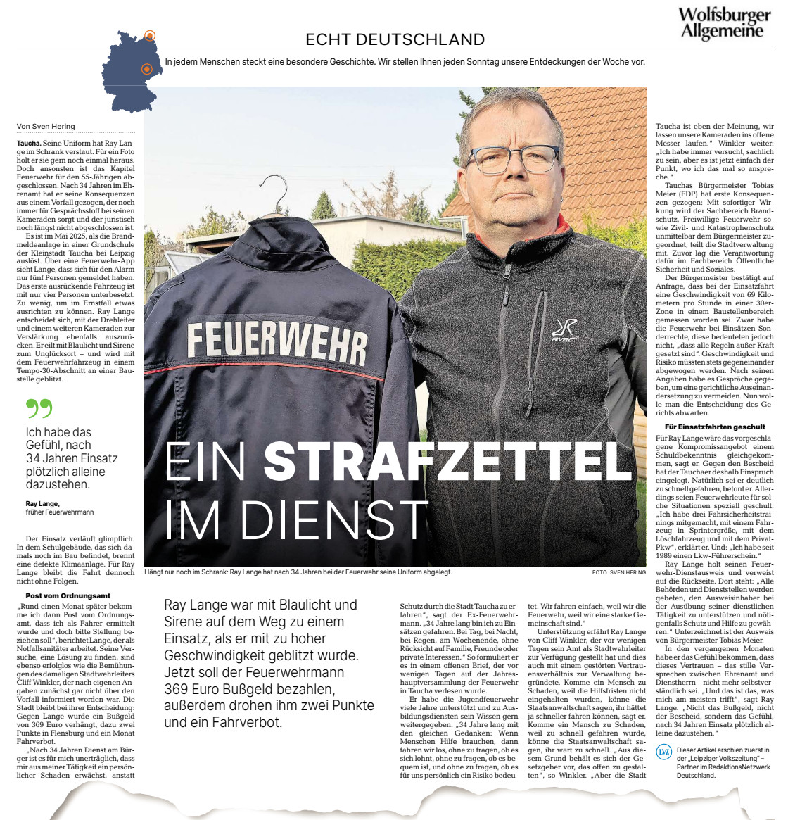 | Bericht über einen Feuerwehrkameraden aus Sachsen, der im Einsatz geblitzt worden war | |